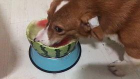柯基吃瓜,萌态十足